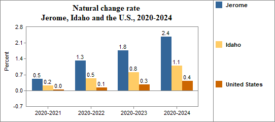 - Had a natural change rate of 0.5 percent compared to 0.2 percent for Idaho.