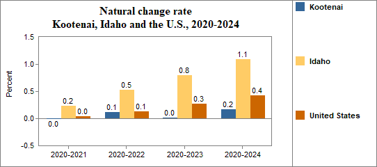 - Had a natural change rate of -0.0 percent compared to 0.2 percent for Idaho.