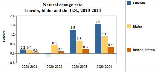 - Had a natural change rate of 0.2 percent compared to 0.2 percent for Idaho.