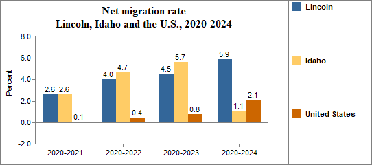 - Had a net migration rate of 2.6 percent compared to 2.6 percent for Idaho.