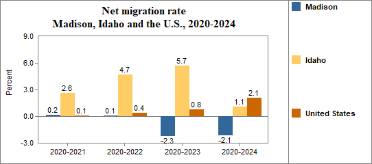 - Had a net migration rate of 0.2 percent compared to 2.6 percent for Idaho.