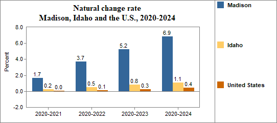 - Had a natural change rate of 1.7 percent compared to 0.2 percent for Idaho.