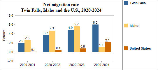 - Had a net migration rate of 2.0 percent compared to 2.6 percent for Idaho.