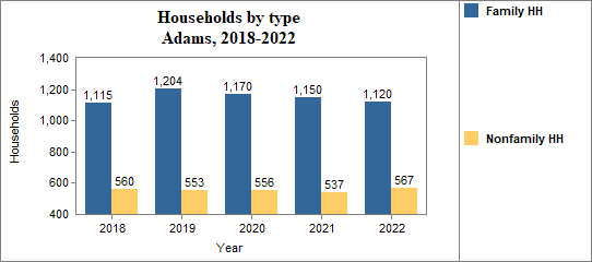 - Female-headed households with children (no husband present) made up 2.2 percent of all households in 2018-2022, compared to 5.5 percent in Idaho.