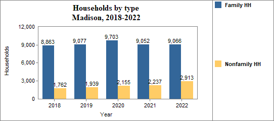 - Family households made up 75.7 percent of the total in 2018-2022, compared to 68.4 percent in Idaho.