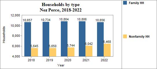 - Family households made up 62.2 percent of the total in 2018-2022, compared to 68.4 percent in Idaho.