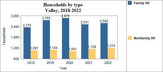 - Family households made up 68.1 percent of the total in 2018-2022, compared to 68.4 percent in Idaho.
