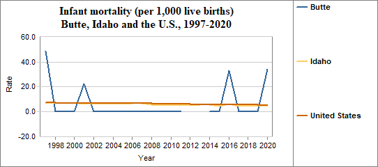 - The infant mortality rate was 34.5 per 1,000 in 2020, compared to 5.1 per 1,000 in Idaho
