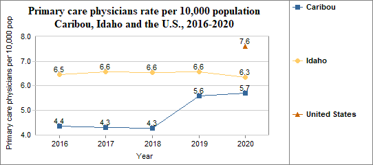 - There were 5.7 primary care physicians per 10,000 population, compared to 6.3 per 10,000 in Idaho