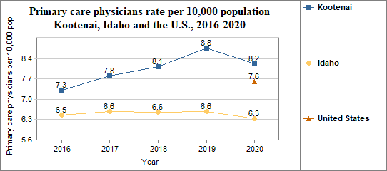 - There were 8.2 primary care physicians per 10,000 population, compared to 6.3 per 10,000 in Idaho