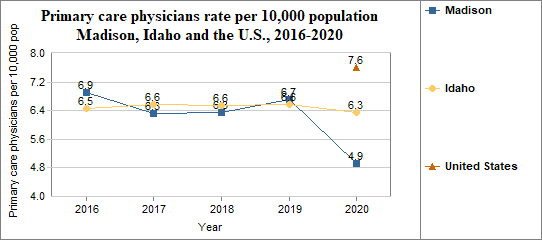 - There were 26 primary care physicians in Madison compared to 27 in 2016.