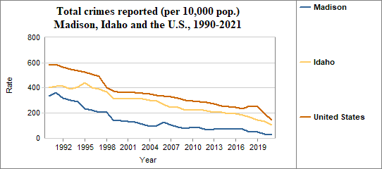 - The rate in 2021 was 30 per 10,000 population, compared to 107 in Idaho