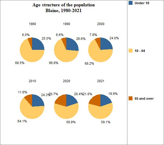 - 21.0 percent of the population was 65 or older in 2021, compared to 16.6 percent in Idaho