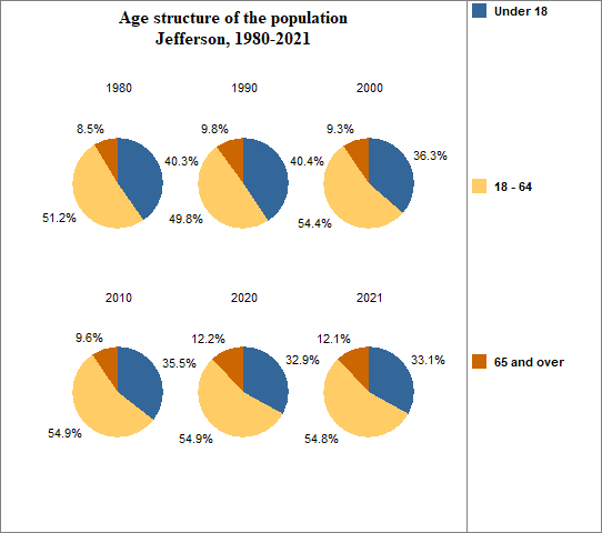 - 33.1 percent of the population was under 18 in 2021, compared to 24.7 percent in Idaho