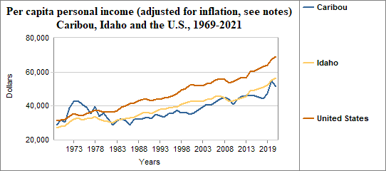 Caribou's per capita income, adjusted for inflation...