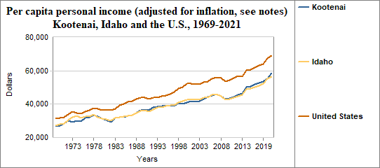 Kootenai's per capita income, adjusted for inflation...