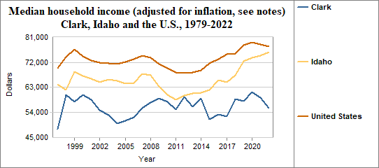 Median household income is the level of income at which half the population has lower incomes and half has higher incomes. Here, we provide information on real median household income, which means the data have been adjusted for inflation. In Clark median household income (adjusted for inflation) . . .