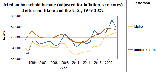 Median household income is the level of income at which half the population has lower incomes and half has higher incomes. Here, we provide information on real median household income, which means the data have been adjusted for inflation. In Jefferson median household income (adjusted for inflation) . . .